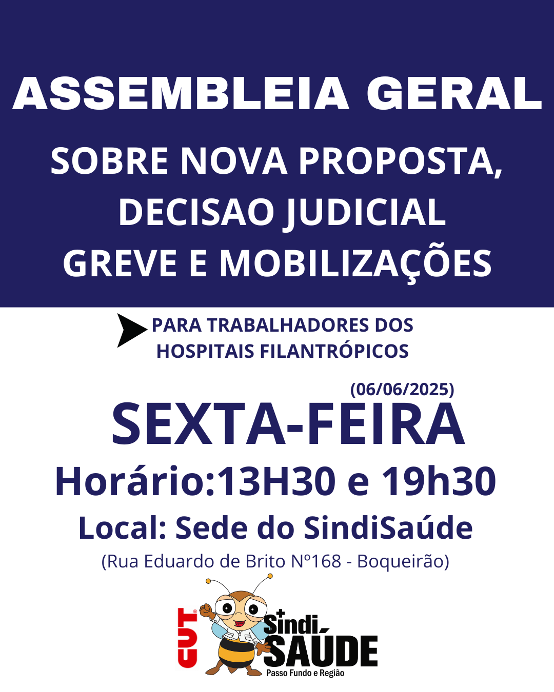 Na última segunda-feira, 7 de julho, o SindiSaúde realizou uma Assembleia Geral com os trabalhadores do Hospital de Caridade...