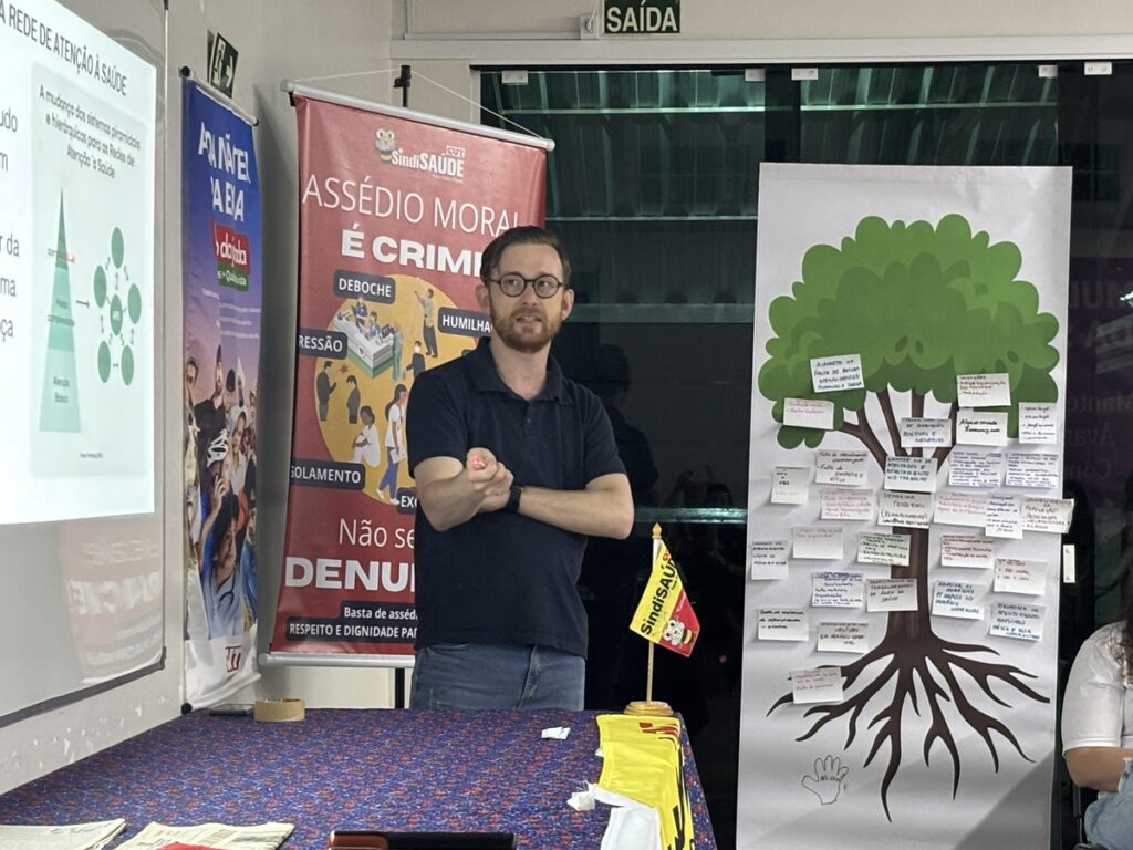 No sábado (29/11), a diretora do SindiSaúde, Terezinha Perissinotto, e a liderança Neri Gomes contribuíram com a atividade trazendo relatos sobre as lutas da saúde no município e compartilhando a experiência de constituição do Fórum Municipal da Saúde, do qual ambas participaram ativamente. O diálogo evidenciou a trajetória do Fórum, seu processo de organização e o papel estratégico que exerce na consolidação de políticas públicas voltadas à saúde da população. O educador popular do CEAP, Jorge Giménez Peralta, também integrou a programação com um debate sobre participação popular, processos formativos e a importância da multiplicação de conhecimentos na área da saúde.