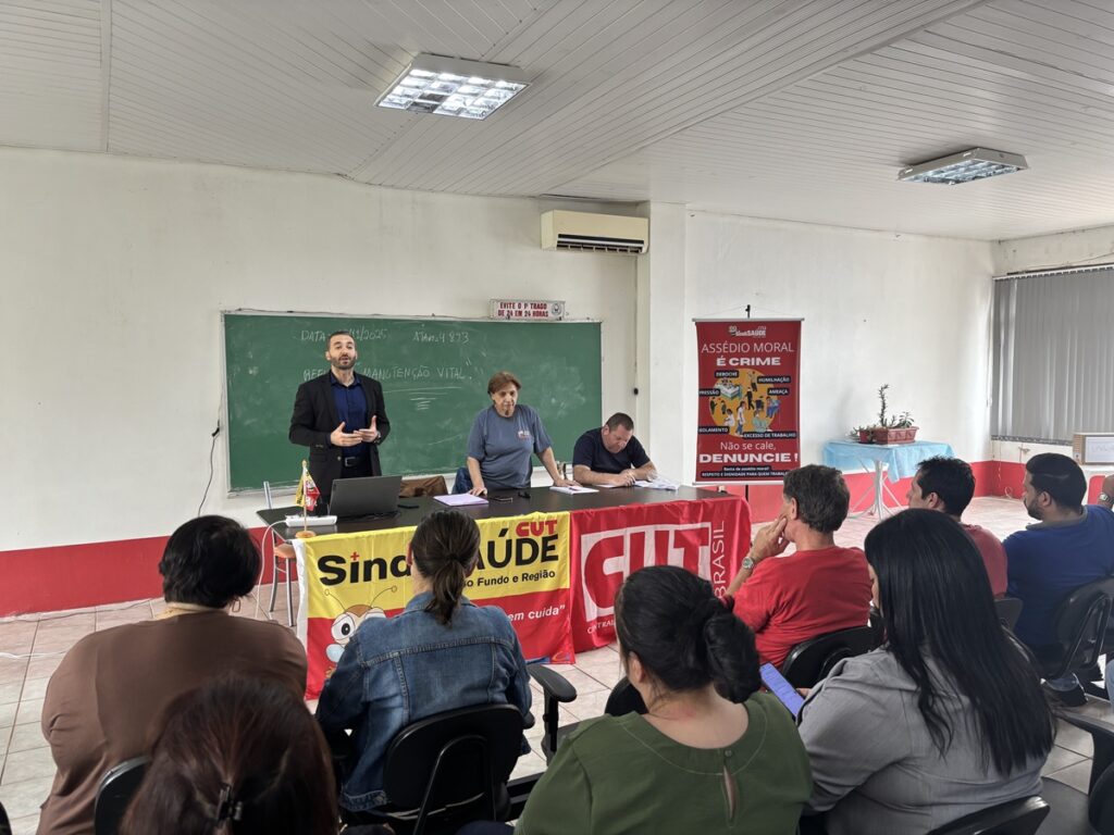 Durante a assembleia, o Sindicato apresentou informes sobre o andamento do processo e os resultados da audiência de mediação conduzida pelo Tribunal Regional do Trabalho da 4ª Região (TRT-RS). Também foi detalhada a proposta de pagamento parcelado referente aos valores devidos por férias em dobro. O total da dívida é de R$ 1,5 milhão, e o hospital propôs o pagamento em 50 parcelas mensais.